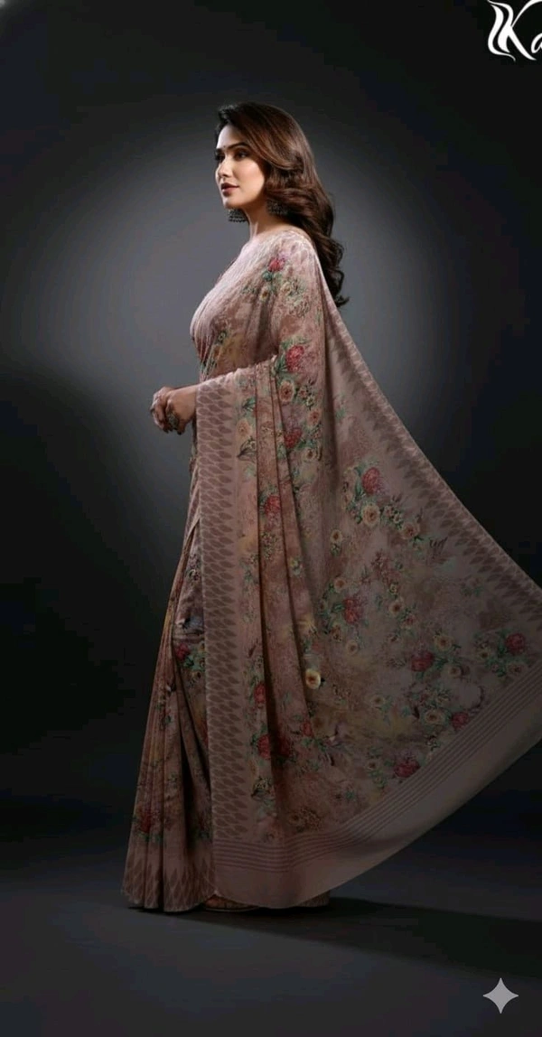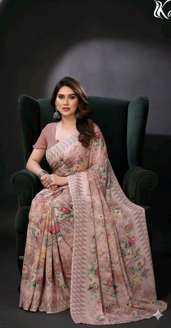 Blush Garden Printed Satin-Blend Saree - Elegance Redefined
