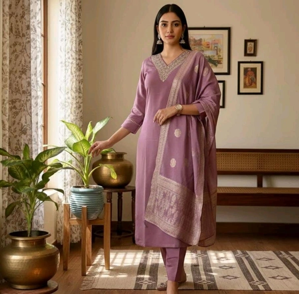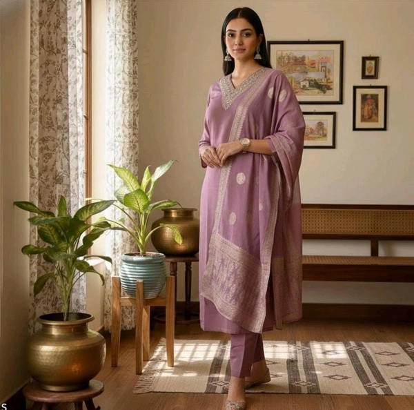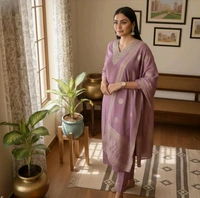 Don’t miss the chance to own this exquisite piece that blends tradition with modern elegance. Add the Purple Silk Blend Salwar Kameez Suit Set to your collection today and let your style shine!
