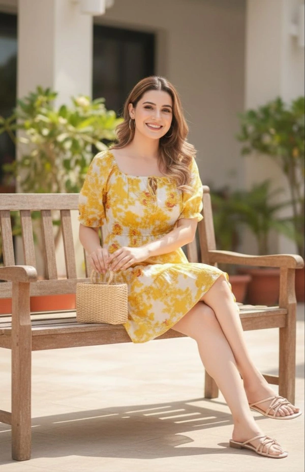 Whether you're looking to refresh your wardrobe or make an unforgettable impression, the Yellow Floral Short Dress is your go-to choice for effortless style and confidence.